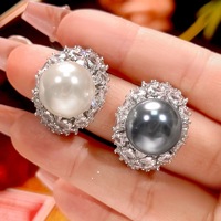 아름다운 흰색 검은색 큰 진주 조절 가능한 반지 여성용 패션 파티 고급 보석 웨딩 액세서리 선물