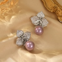 Роскошные тяжелые модные циркониевые микро инкрустированные лепестками в форме капель жемчужные серьги